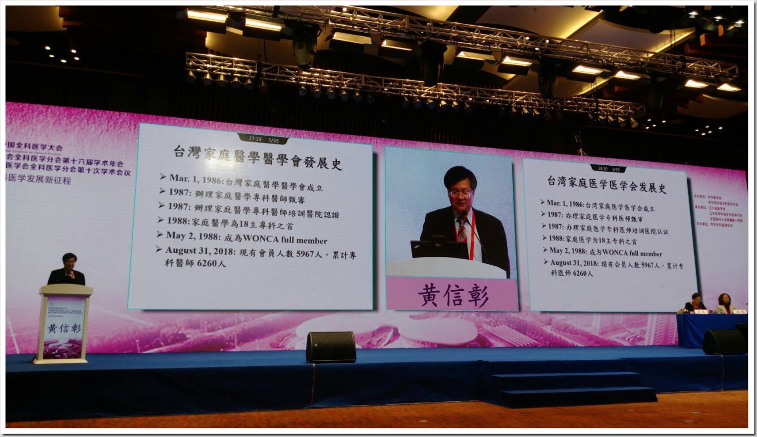 On behalf of TAFM, President Shinn-Jang Hwang and Honorary President Meng-Chih Lee attended the 2018 Annual Conference of Chinese Society of General Practice which was held in Shenyang, Liaoning Province, China, and promoted TFAM with great success. President Hwang presented the experience of training and education of family medicine residents in Taiwan in the Plenary section of the conference, and got a lively discussion from the audience.