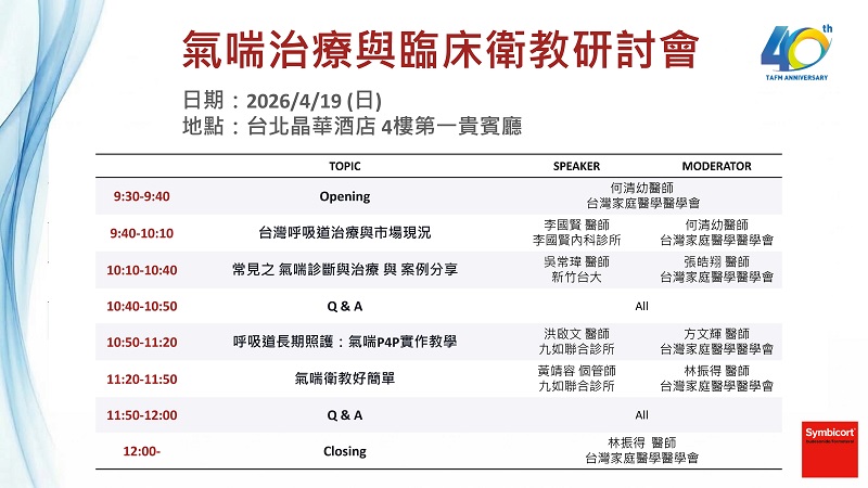 氣喘治療與臨床衛教研討會-台北場