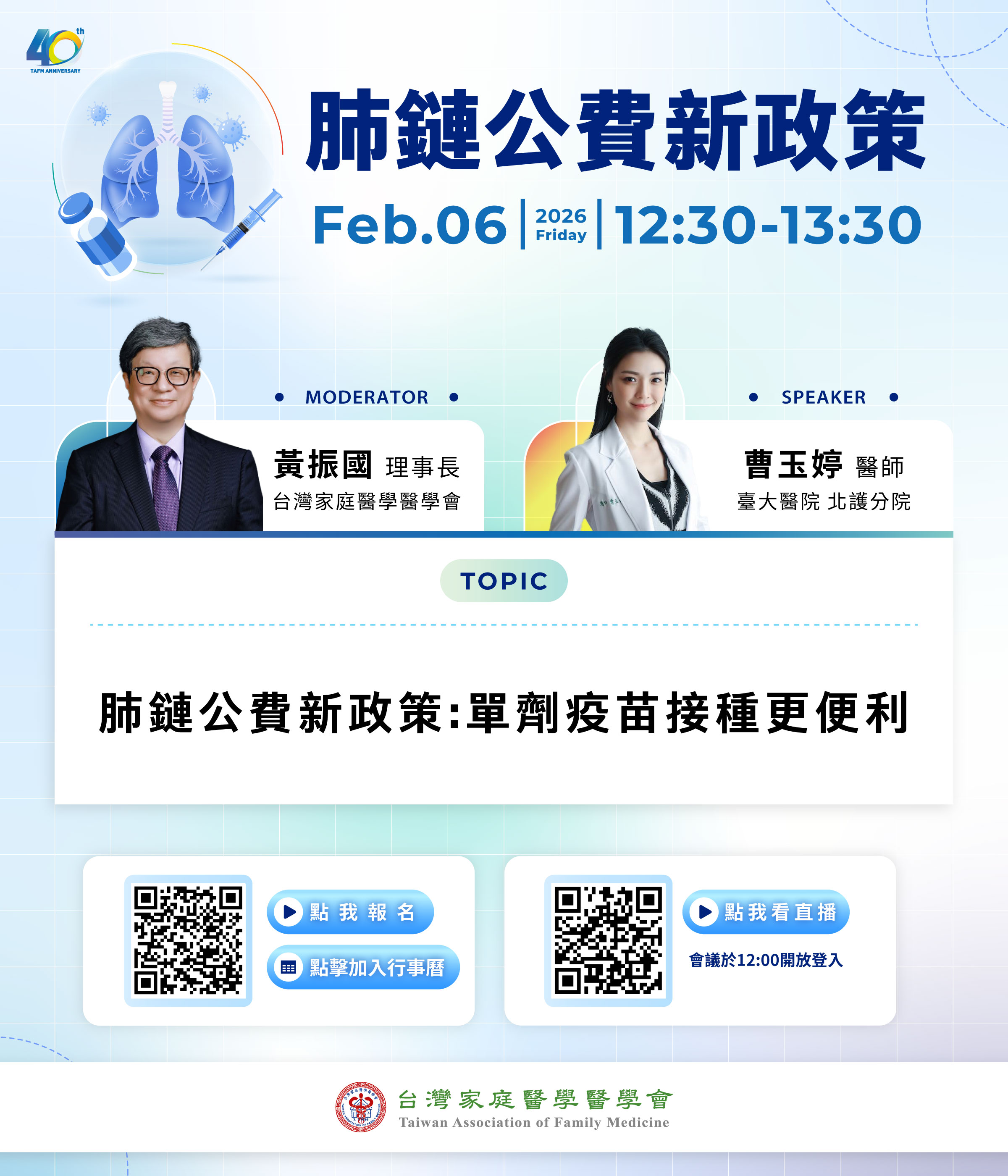 上課通知-115.2.6(五)家醫40周年系列課程 肺鏈公費新政策